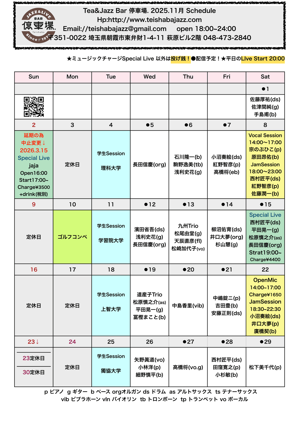 Open 18:00~ Start 20:00