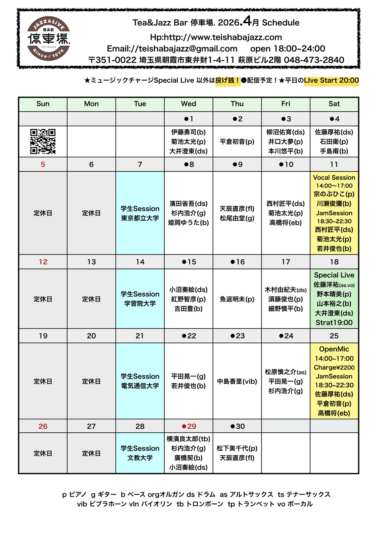 Tea&Jazz Bar 停車場Open: 18:00-Close24:00